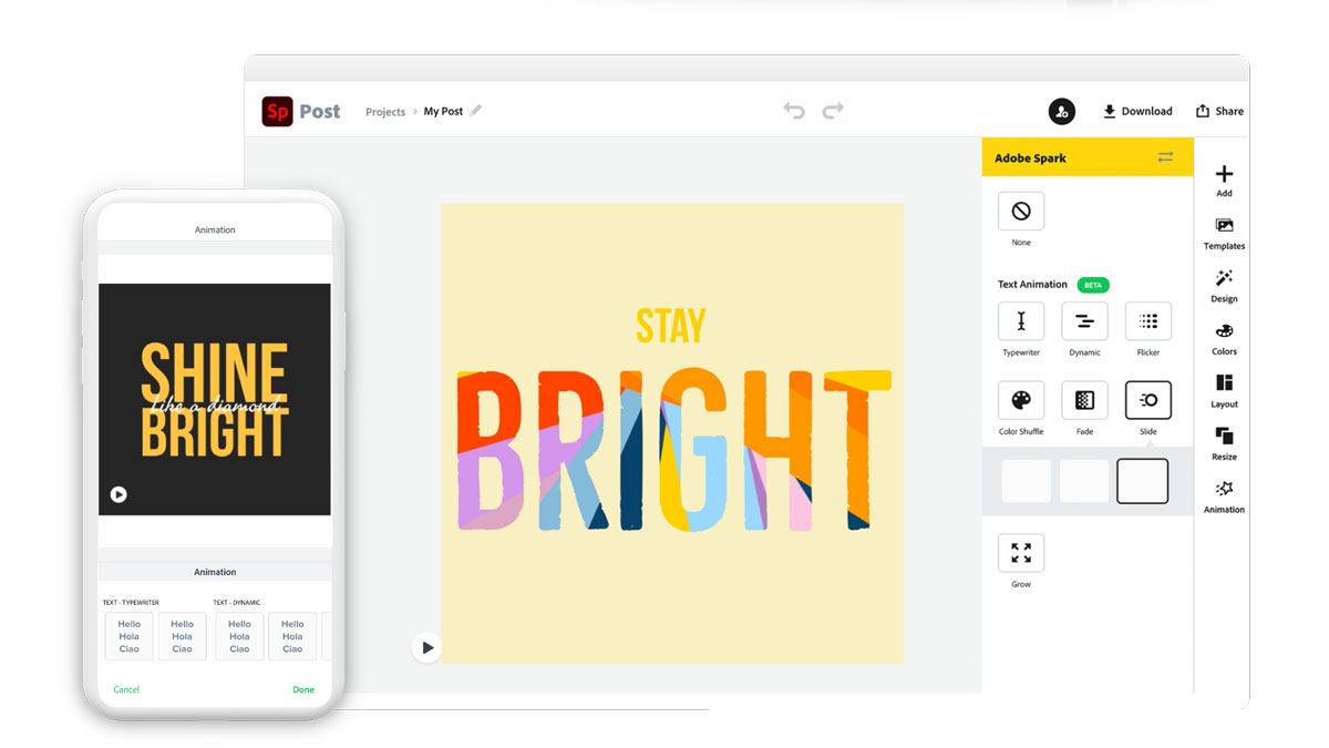 Adobe Spark Animations empowers non-designers with no animation experience to quickly animate text and photos for stand-out social posts and stories.