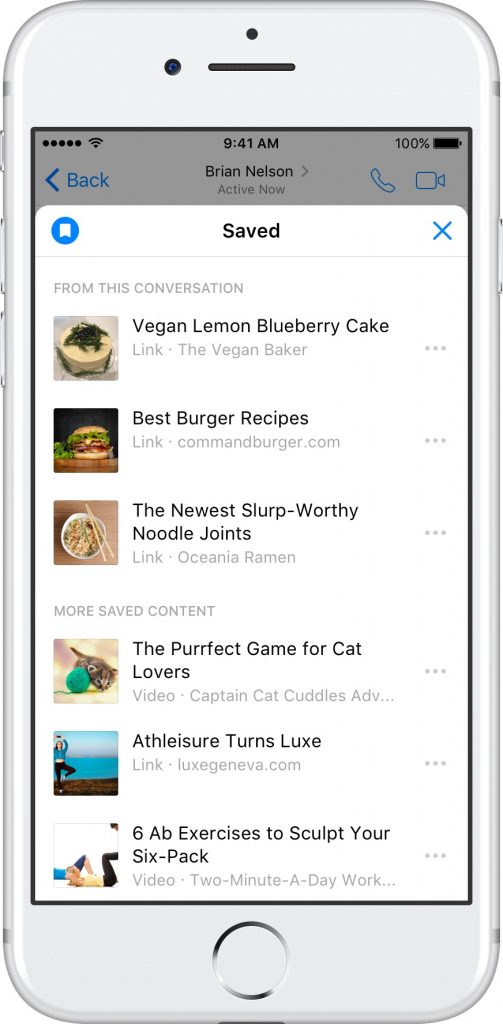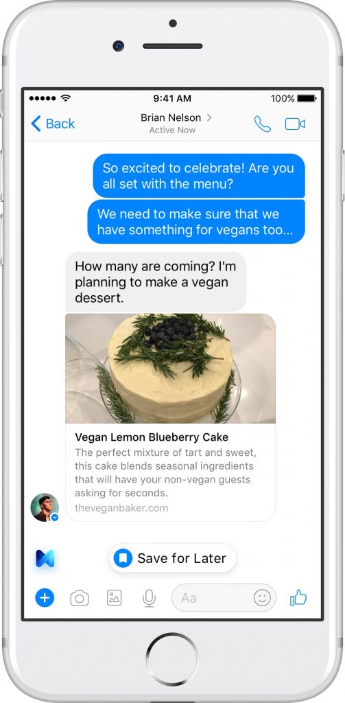 Saving content: M will now suggest that users can save content in Messenger that they can either read, watch, or share, later. Messenger’s Saved extension now also allows you to share content in one-on-one or group messages.