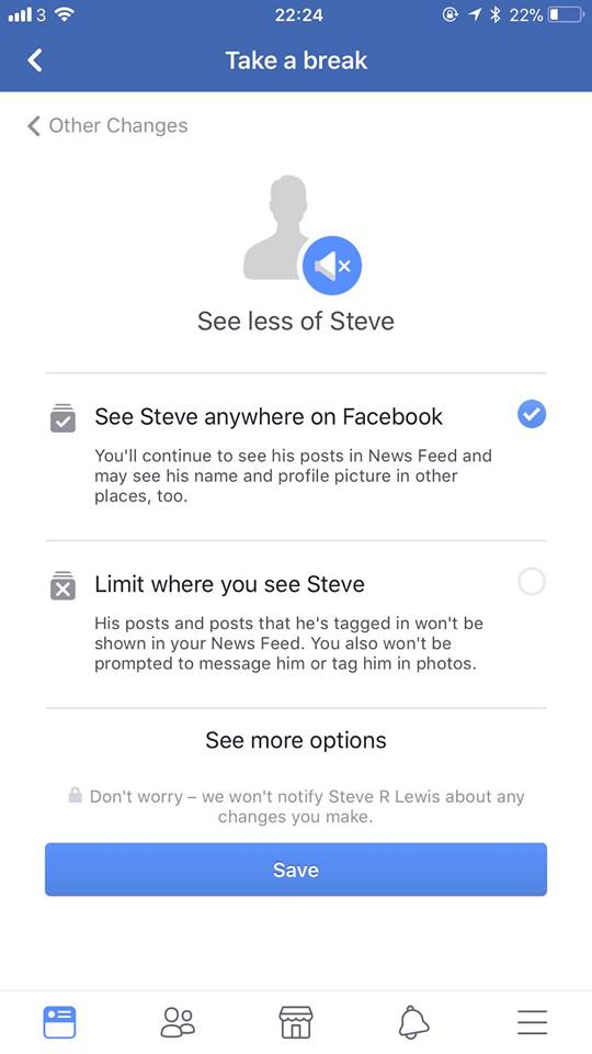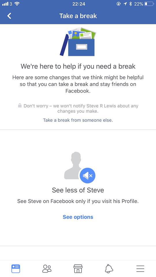The new feature being tested is an extension to the “See Less” option that appeared in 2012 and the “Unfollow” option that appeared 2 years later. Facebook also recently rolled out a “Take a break” option on friends’ profiles. The feature was recently spotted by TNW’s Director of Social Media, Matt Navarra as seen below.