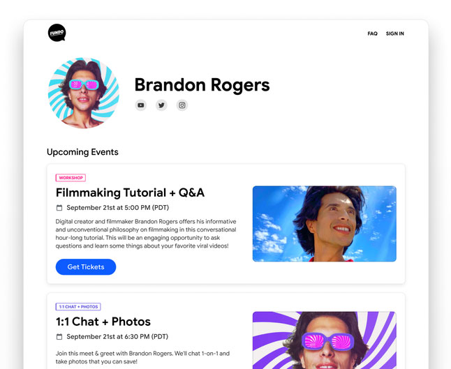 Fundo also provides creators with new monetization options, putting them in control of ticket prices and discounts, and even allowing them to create free events. Furthermore, some creators using YouTube Channel Memberships are able to offer Fundo Meet & Greets exclusively to channel members as a premium perk.