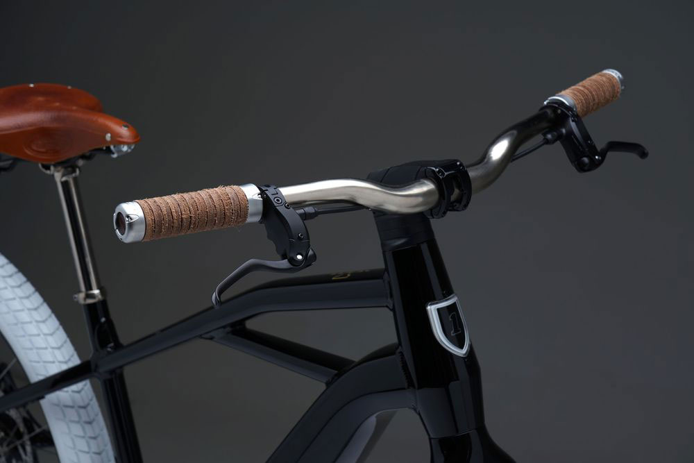 The Serial 1’s design is a nostalgic hat tip to the 1903 Serial Number One motorcycle with its white tires, leather saddle and handgrips, and black frame. It features a mid-drive motor and belt drive and a frame-integrated battery and lights (headlight and taillights).
