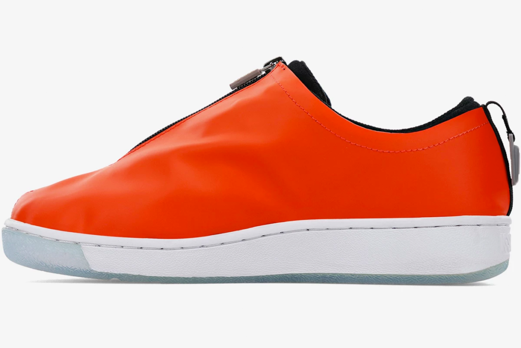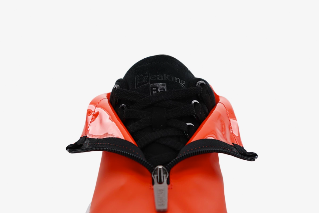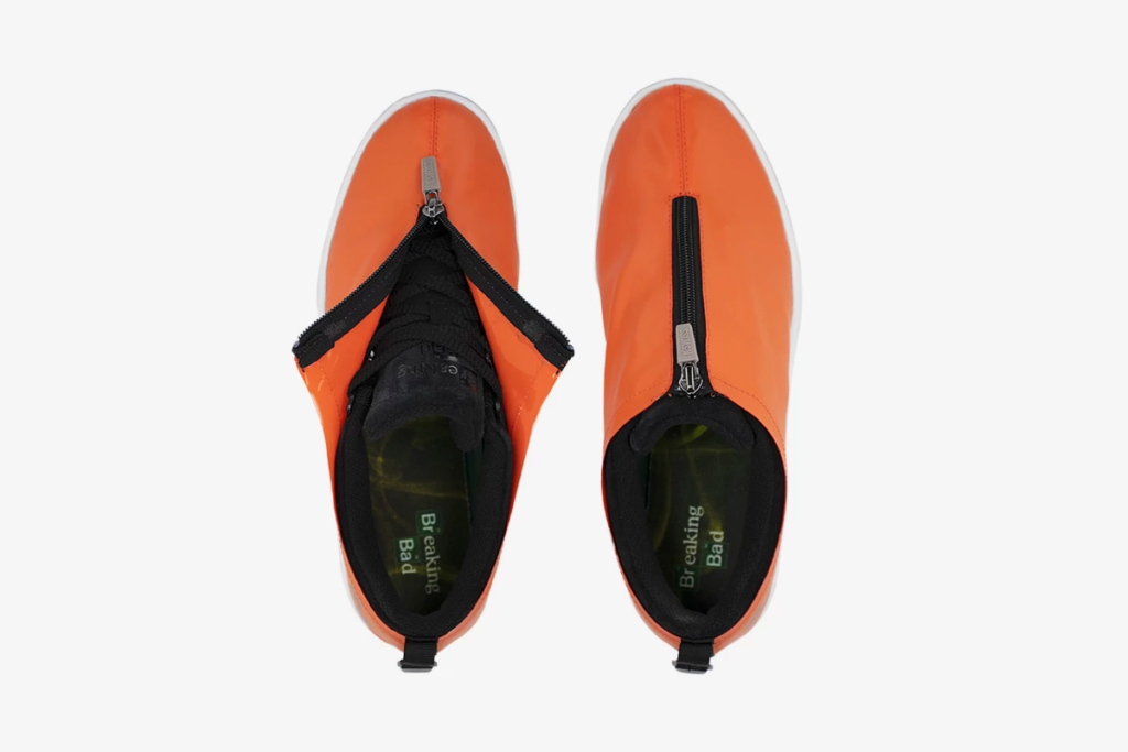 The “Cooking” sneakers are inspired by the hazmat suits Walter White and Jesse Pinkman used to clean up their lab. This design comes with an orange shroud covering a black upper.