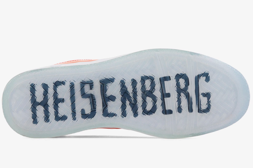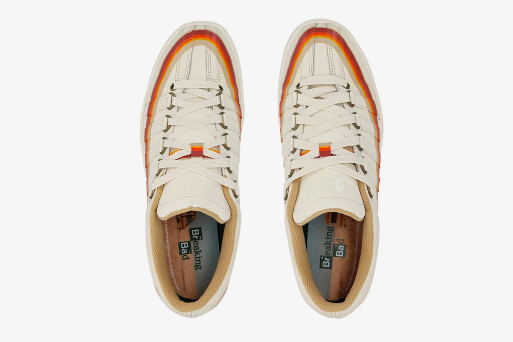 The “Recreational Vehicle” Classic 2000 is a nod to Walter and Jesse’s first lab. The cream-leather sneaker is decorated with a multicolored side stripe, mimicking the look of the RV.