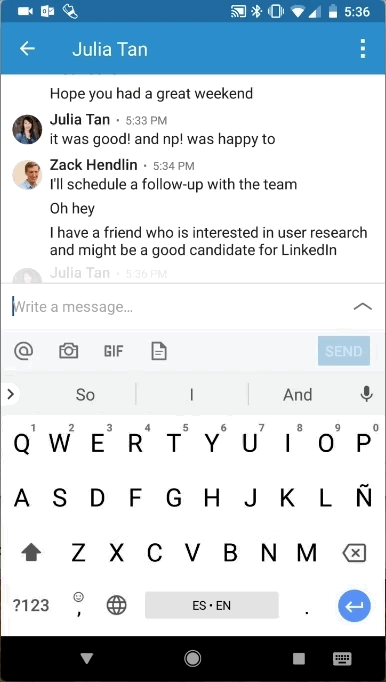You can now send attachments right from your phone in the LinkedIn app. Say you want to send a recruited a CV. Do so easily by tapping the attachment icon and selecting the file. It works with approved file types like PDF, DOC, XLS, and PPT. LinkedIn says that “this has been one of the most frequently requested messaging features” and we agree that it’s a handy one.