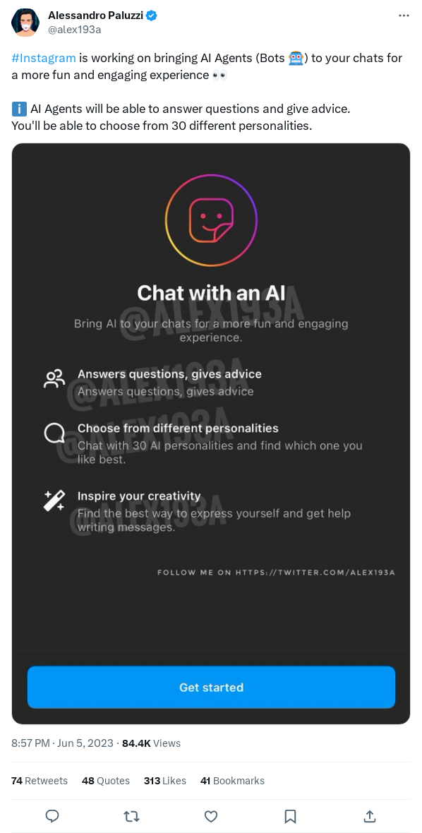 Besides Zuckerberg’s mention of AI features during Meta’s earnings call more recently, earlier this summer, we also caught a whiff of a new “Chat with an AI” feature discovered and leaked by app researcher Alessandro Paluzzi within the Instagram app.