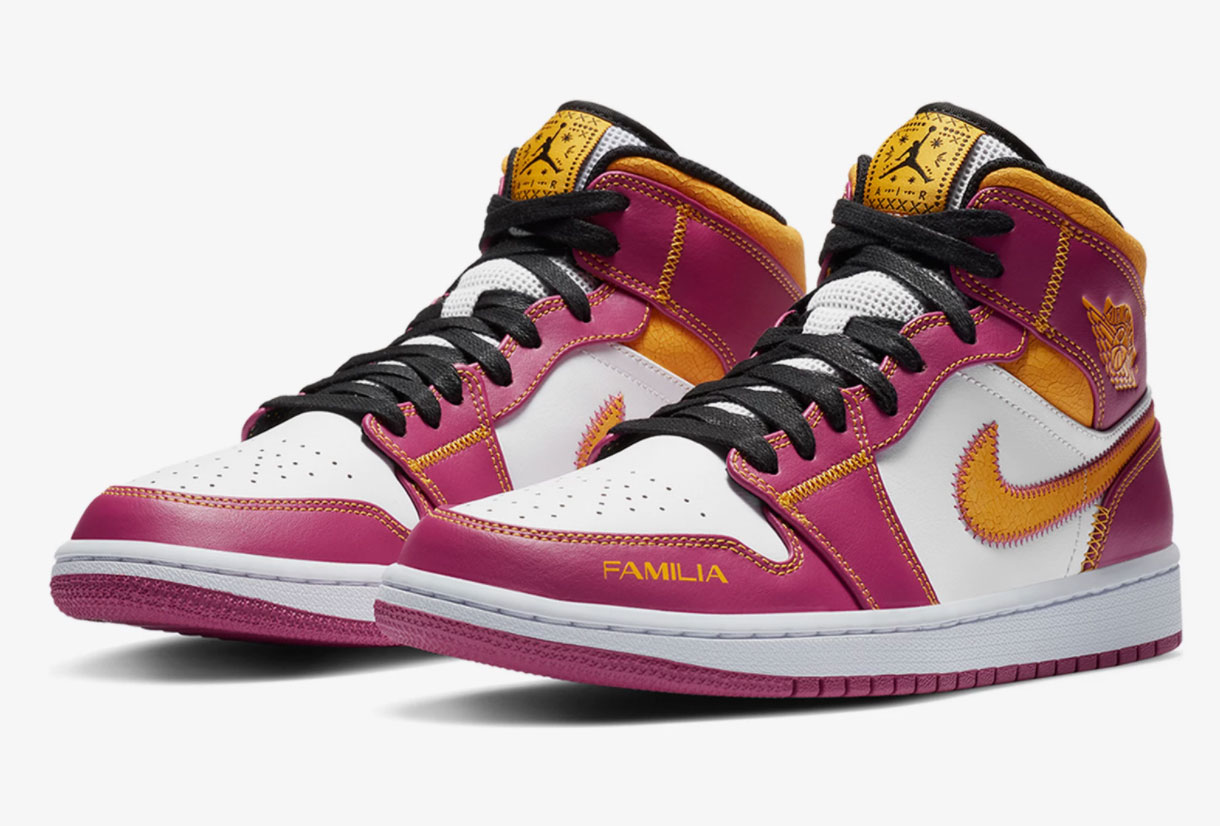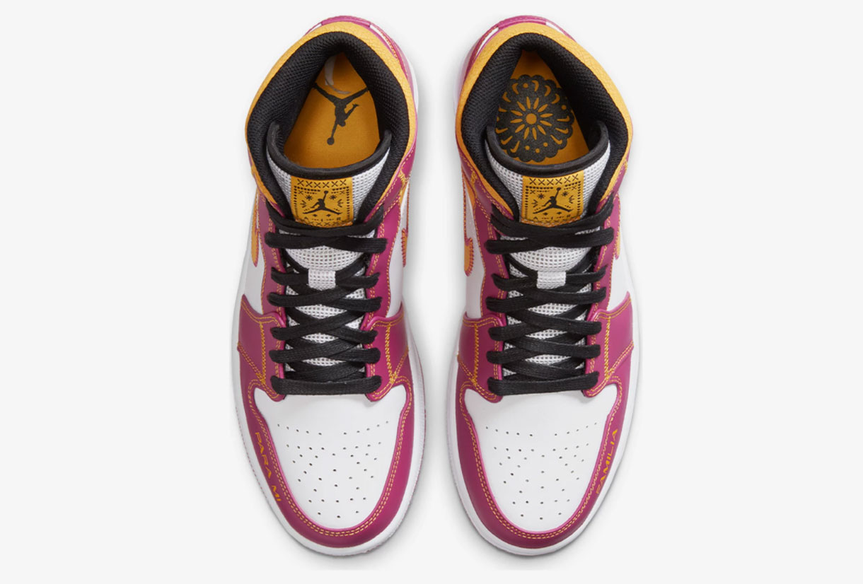 Among the collection being released, the Air Jordan 1 Mid is the most awaited. It comes in a three-tone color scheme that is deeply rooted in those of traditional floral ofrendas – altars that are laid out during the Day of the Dead holiday, Día de Los Muertos.