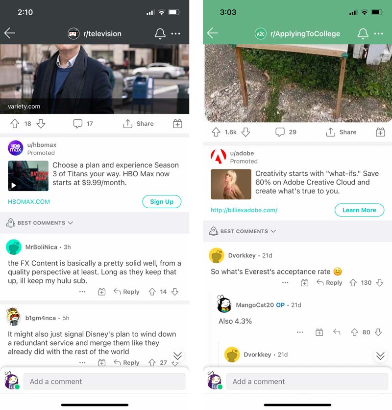 During the past year, Reddit has beta-tested Conversation Placement with more than 600 advertising partners, including HBO Max, Adobe, Monday.com, The Washington Post, and Nespresso.