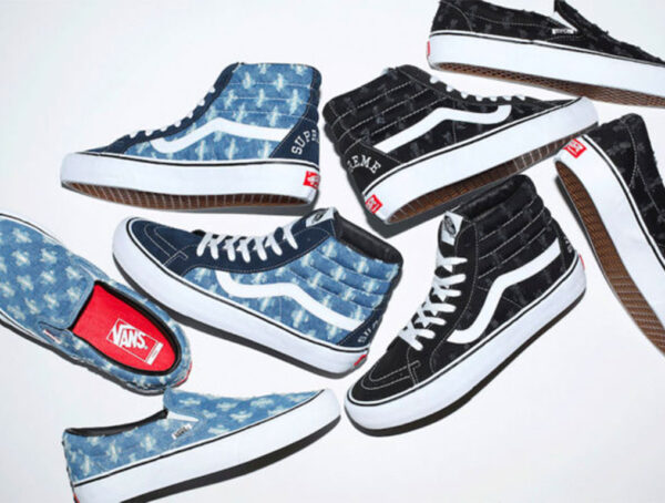 Supreme and Vans are releasing the long-awaited Hole Punch Denim collection this week, including Sk8-Hi Pro and Slip-On Pro models.
